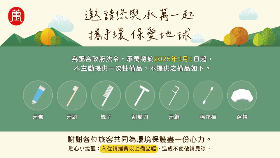 2025年1月1日起, 不主動提供一次性備品